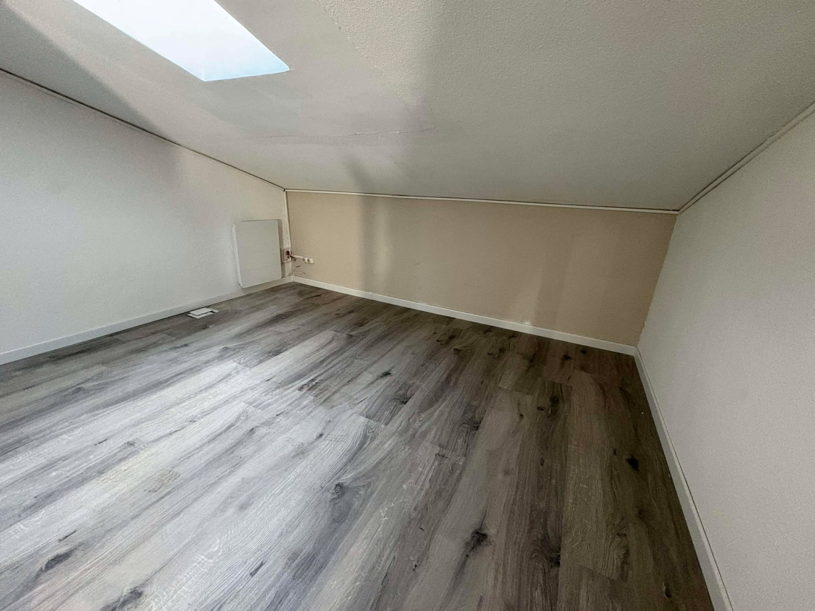 A l'étage une chambre, une salle de bain avec toilettes et un espace bureau ou chambre.