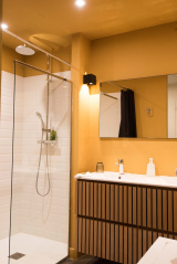 Toujorus sur le même niveau, Il y a également trois chambres dont deux avec terrasse privative.