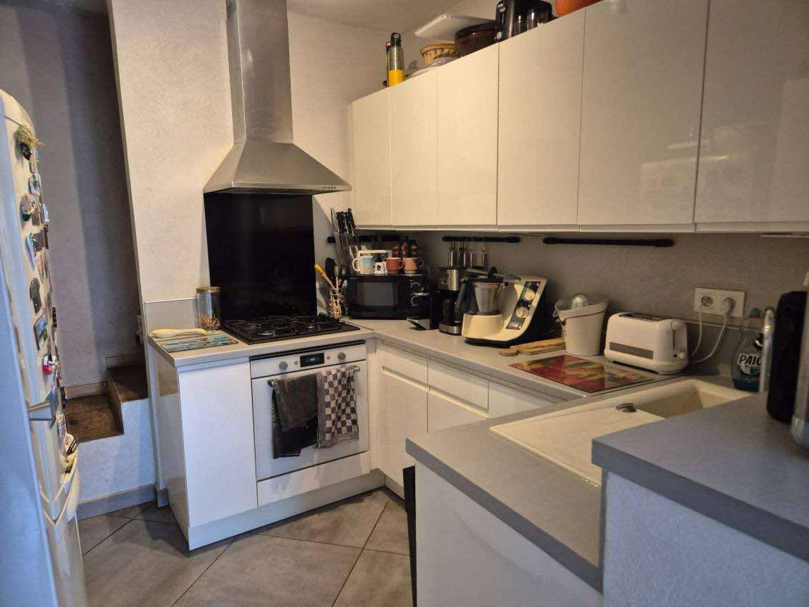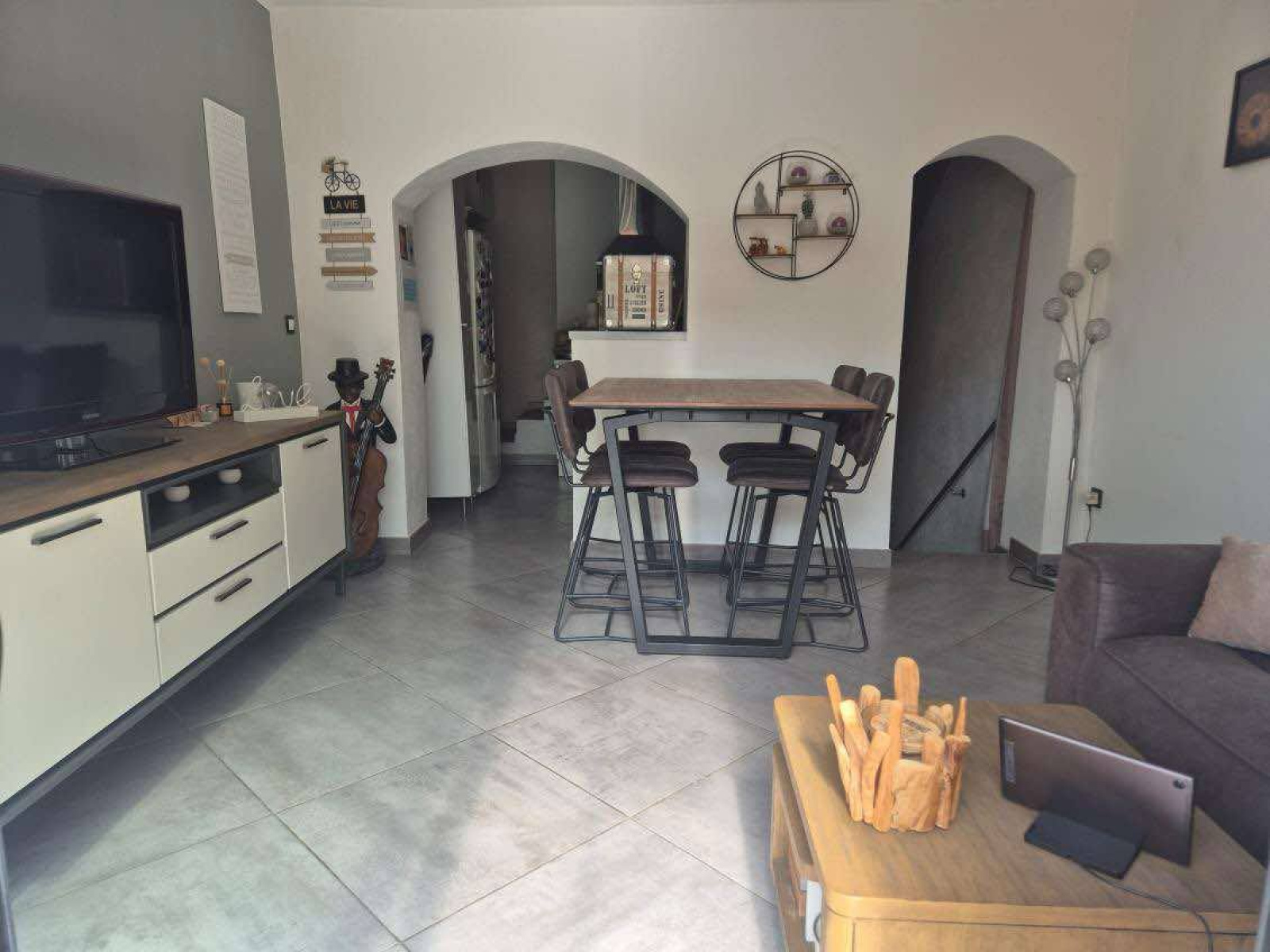 Une cuisine entièrement équipée et un salon donnant sur cette jolie terrasse. l'étage propose une chambre de 15 m² et une pièce de 7 m² popuvant faire office de chambre d'appoint ou de bureau.